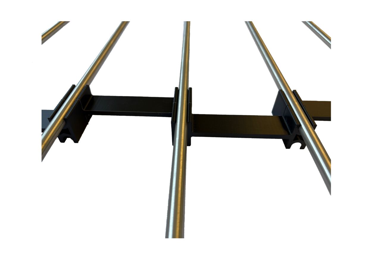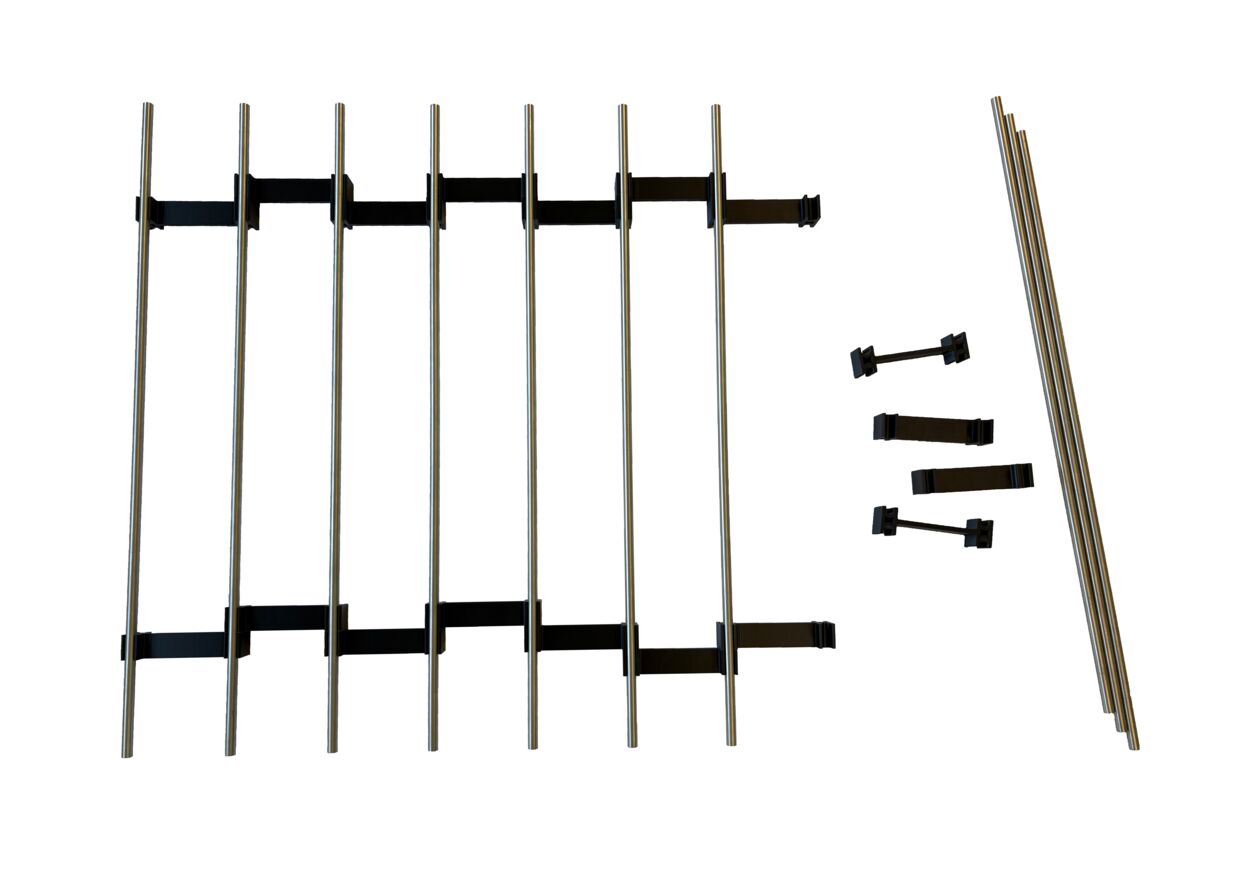 Diese Variante ist speziell für das präzise Ausrichten und Fixieren von Füllstäben mit Ø10 mm und Ø12 mm konzipiert. Sie ermöglicht das exakte und rechtwinklige Einsetzen der Füllstäbe, sodass diese fluchtend zur Geländerkonstruktion positioniert und sauber verschweißt werden können.