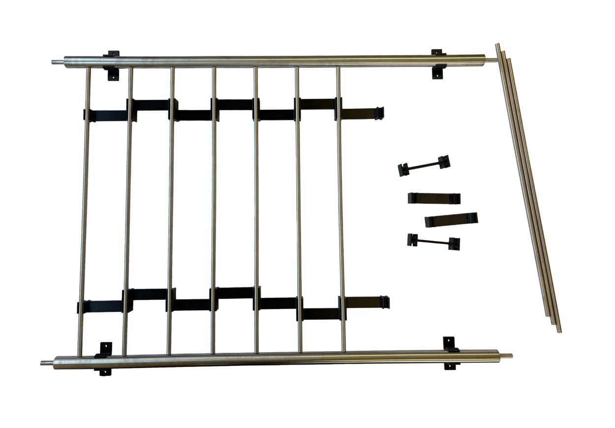 Der Abstand von Mitte zu Mitte der Füllstäbe beträgt 120 mm und entspricht damit einem gängigen Standardmaß für klassische Stabgeländer. So lassen sich gleichmäßige Füllungen mit hoher Wiederholgenauigkeit realisieren – ideal für Serienfertigung oder Einzelstücke.